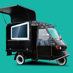 Met PromoPiaggio Concepting proberen wij uw doelgroep altijd een ervaring of beleving te bieden, met humor en altijd in stijl. Of het nu gaat om een bedrijfspresentatie midden in het bos, een interactief punt op de schaatsbaan in Friesland of op de Weissensee in Oostenrijk, een ludieke pendel tussen parkeerplaats of station en uw event of congres, alles is mogelijk. Met aankleding zoals u het maar wilt hebben, denk onder meer aan: Piaggio’s in elke gewenste kleur en/of motief, chauffeurskostuums, een grote schildpad op het dak, maar ook verzorgen wij hightech LED-design voor kleurige en opvallende promotie op grote LED-schermen. Kortom, wij zorgen ervoor dat uw gasten met een grote glimlach weer op pad gaan en lang zullen napraten over uw merk, product of event!